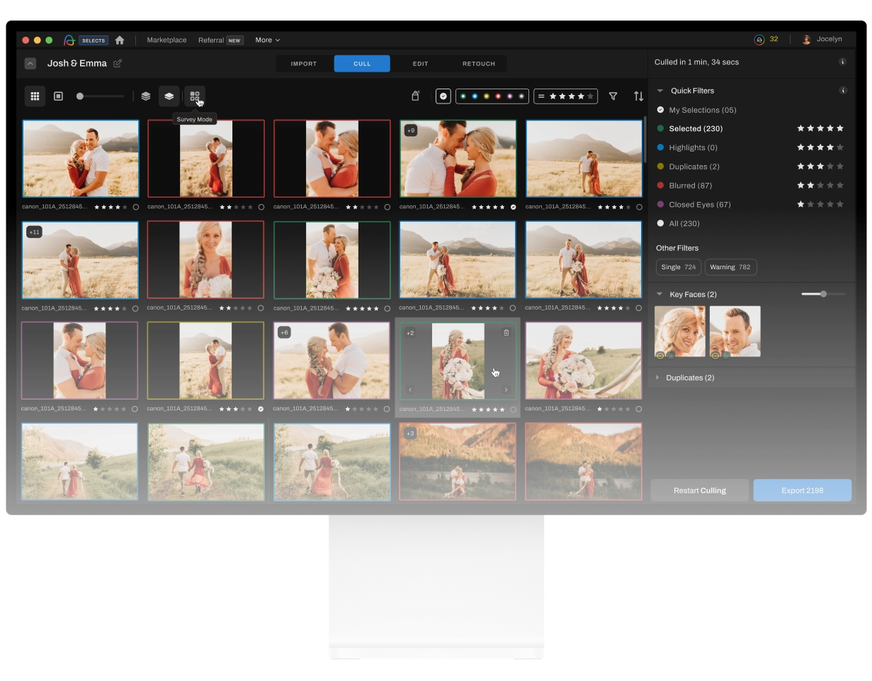 Aftershoot gives you AI-powered culling, editing, and retouching all in one place. You can process unlimited images for a flat subscription fee—no per-image pricing. It works completely offline on your computer, so you can process photos anywhere without needing internet or worrying about slow uploads. The AI learns your style by watching how you cull, edit, and retouch, then applies those same preferences to future shoots. You get a complete post-shoot workflow that handles everything from selection to final polish, backed by top-notch customer support.